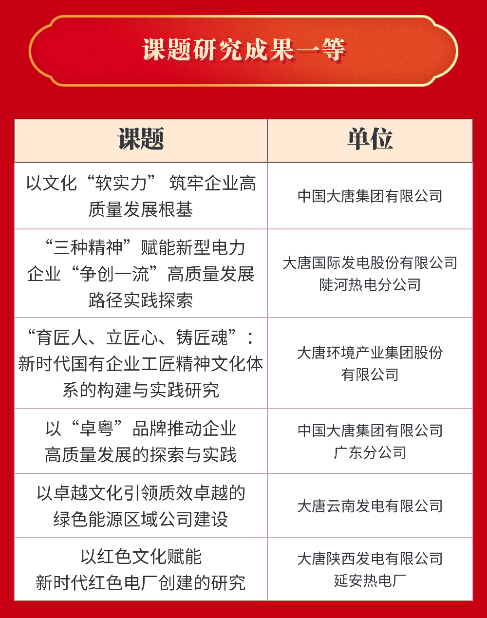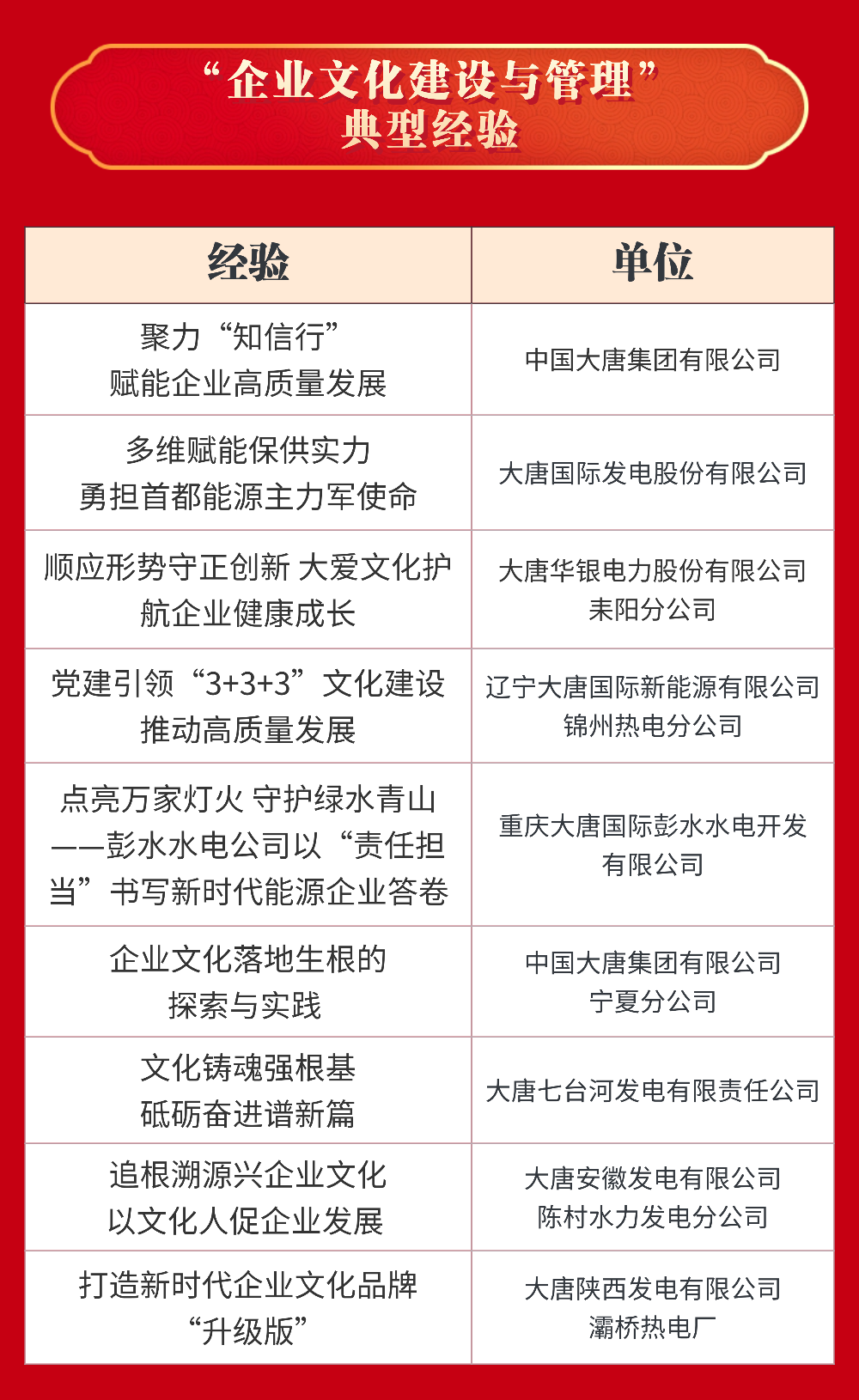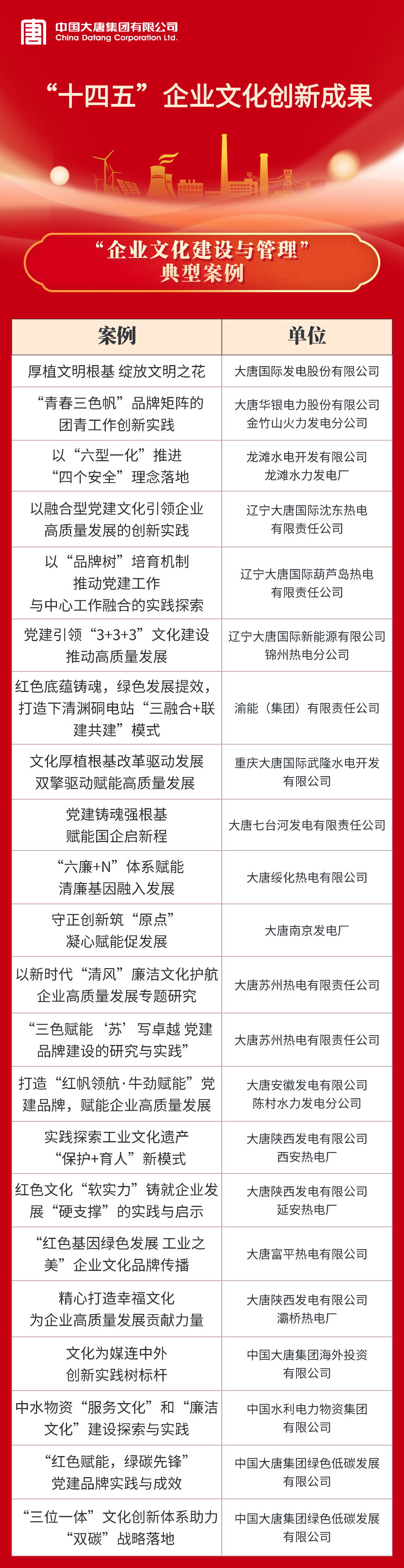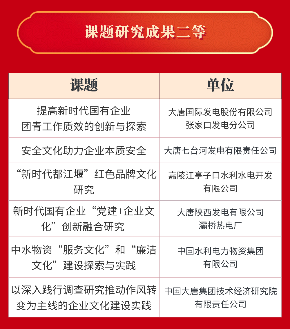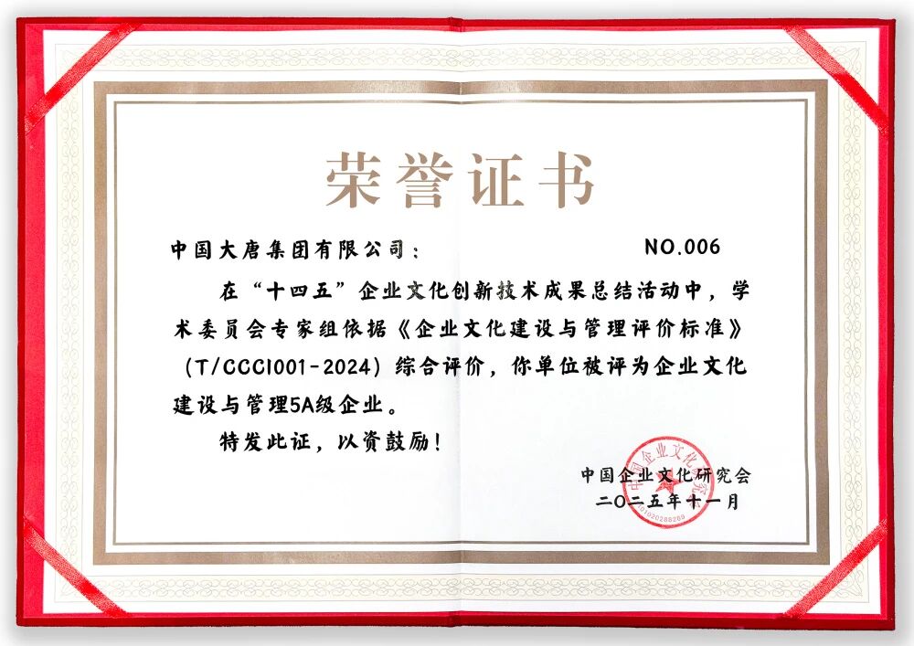 中國大唐獲評企業文化建設與管理5A級企業,大唐國際發電股份有限公司和中國大唐集團海外投資有限公司獲評4A級企業。